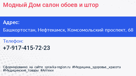 Модный Дом, салон обоев и штор по адресу Башкортостан, Нефтекамск, Комсомольский проспект, 68 в дальнейшем Организация, размещена в следующих категориях: