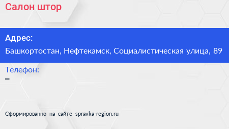 Салон штор по адресу Башкортостан, Нефтекамск, Социалистическая улица, 89 в дальнейшем Организация, размещена в следующих категориях: