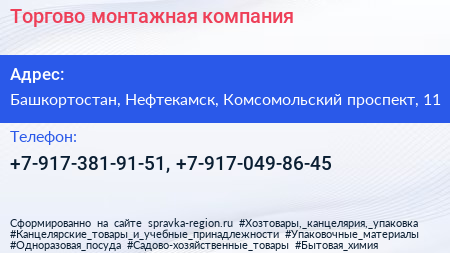 Торгово-монтажная компания по адресу Башкортостан, Нефтекамск, Комсомольский проспект, 11 в дальнейшем Организация, размещена в следующих категориях: