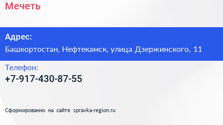 Мечеть по адресу Башкортостан, Нефтекамск, улица Дзержинского, 11 в дальнейшем Организация, размещена в следующих категориях: