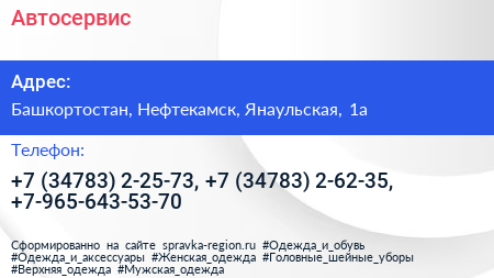 Автосервис по адресу Башкортостан, Нефтекамск, Янаульская, 1а в дальнейшем Организация, размещена в следующих категориях: