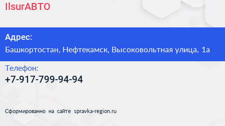 IlsurАВТО по адресу Башкортостан, Нефтекамск, Высоковольтная улица, 1а в дальнейшем Организация, размещена в следующих категориях: