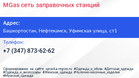 MGas, сеть заправочных станций по адресу Башкортостан, Нефтекамск, Уфимская улица, ст1 в дальнейшем Организация, размещена в следующих категориях: