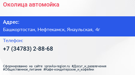 Околица, автомойка по адресу Башкортостан, Нефтекамск, Янаульская, 4г в дальнейшем Организация, размещена в следующих категориях: