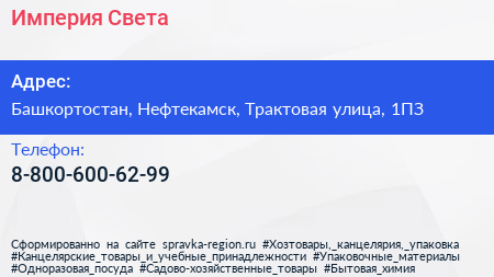 Империя Света по адресу Башкортостан, Нефтекамск, Трактовая улица, 1ПЗ в дальнейшем Организация, размещена в следующих категориях: