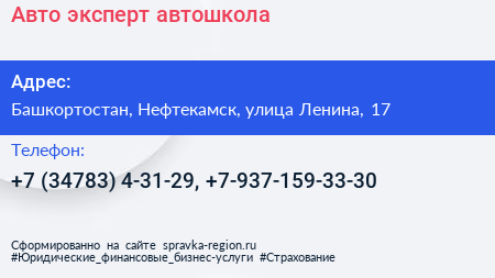 Авто-эксперт, автошкола по адресу Башкортостан, Нефтекамск, улица Ленина, 17 в дальнейшем Организация, размещена в следующих категориях:
