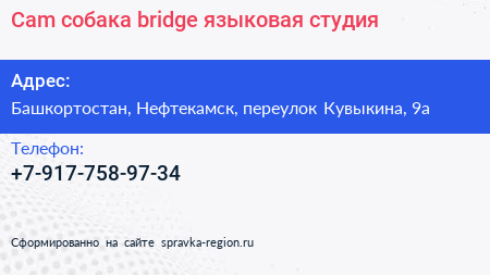 Cam собака bridge, языковая студия по адресу Башкортостан, Нефтекамск, переулок Кувыкина, 9а в дальнейшем Организация, размещена в следующих категориях: