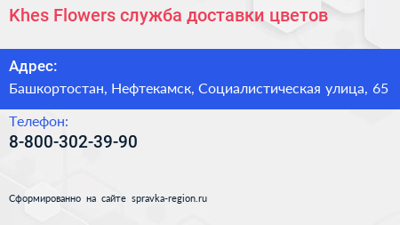 Khes Flowers, служба доставки цветов по адресу Башкортостан, Нефтекамск, Социалистическая улица, 65 в дальнейшем Организация, размещена в следующих категориях:
