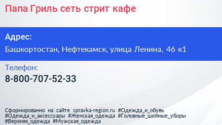 Папа Гриль, сеть стрит-кафе по адресу Башкортостан, Нефтекамск, улица Ленина, 46 к1 в дальнейшем Организация, размещена в следующих категориях: