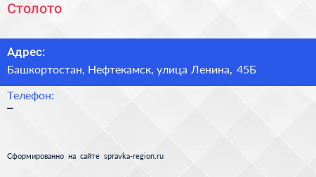 Столото по адресу Башкортостан, Нефтекамск, улица Ленина, 45Б в дальнейшем Организация, размещена в следующих категориях: