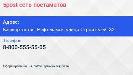 5post, сеть постаматов по адресу Башкортостан, Нефтекамск, улица Строителей, 82 в дальнейшем Организация, размещена в следующих категориях: