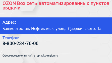 OZON Box, сеть автоматизированных пунктов выдачи по адресу Башкортостан, Нефтекамск, улица Дзержинского, 1а в дальнейшем Организация, размещена в следующих категориях: