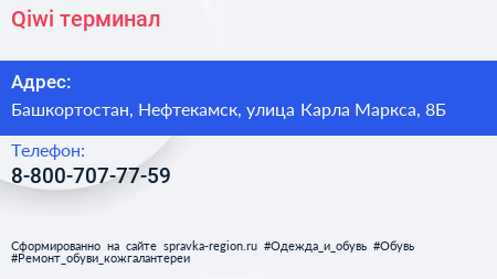 Qiwi, терминал по адресу Башкортостан, Нефтекамск, улица Карла Маркса, 8Б в дальнейшем Организация, размещена в следующих категориях: