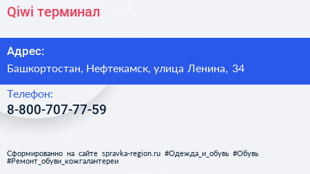 Qiwi, терминал по адресу Башкортостан, Нефтекамск, улица Ленина, 34 в дальнейшем Организация, размещена в следующих категориях: