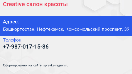 Creative, салон красоты по адресу Башкортостан, Нефтекамск, Комсомольский проспект, 39 в дальнейшем Организация, размещена в следующих категориях: