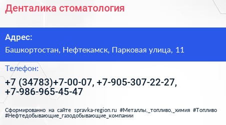 Денталика, стоматология по адресу Башкортостан, Нефтекамск, Парковая улица, 11 в дальнейшем Организация, размещена в следующих категориях: