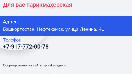 Для вас, парикмахерская по адресу Башкортостан, Нефтекамск, улица Ленина, 41 в дальнейшем Организация, размещена в следующих категориях: