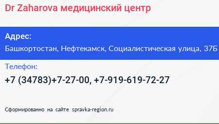 Dr.Zaharova, медицинский центр по адресу Башкортостан, Нефтекамск, Социалистическая улица, 37Б в дальнейшем Организация, размещена в следующих категориях: