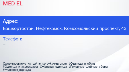 MED-EL по адресу Башкортостан, Нефтекамск, Комсомольский проспект, 43 в дальнейшем Организация, размещена в следующих категориях: