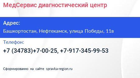 МедСервис, диагностический центр по адресу Башкортостан, Нефтекамск, улица Победы, 11в в дальнейшем Организация, размещена в следующих категориях: