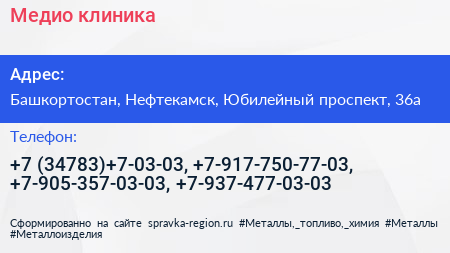 Медио, клиника по адресу Башкортостан, Нефтекамск, Юбилейный проспект, 36а в дальнейшем Организация, размещена в следующих категориях:
