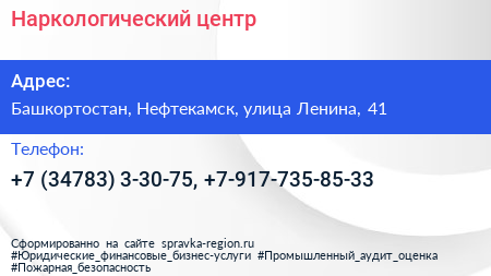 Наркологический центр по адресу Башкортостан, Нефтекамск, улица Ленина, 41 в дальнейшем Организация, размещена в следующих категориях: