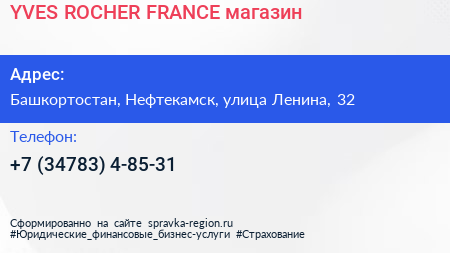 YVES ROCHER FRANCE, магазин по адресу Башкортостан, Нефтекамск, улица Ленина, 32 в дальнейшем Организация, размещена в следующих категориях: