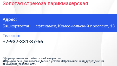 Золотая стрекоза, парикмахерская по адресу Башкортостан, Нефтекамск, Комсомольский проспект, 13 в дальнейшем Организация, размещена в следующих категориях:
