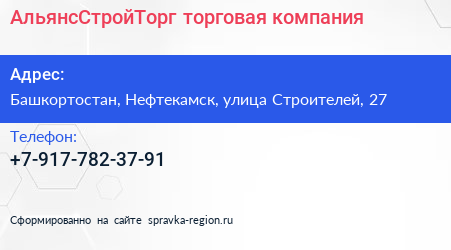АльянсСтройТорг, торговая компания по адресу Башкортостан, Нефтекамск, улица Строителей, 27 в дальнейшем Организация, размещена в следующих категориях: