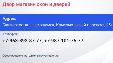 Двор, магазин окон и дверей по адресу Башкортостан, Нефтекамск, Комсомольский проспект, 45г в дальнейшем Организация, размещена в следующих категориях: