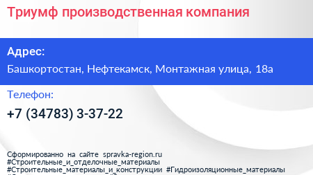 Триумф, производственная компания по адресу Башкортостан, Нефтекамск, Монтажная улица, 18а в дальнейшем Организация, размещена в следующих категориях: