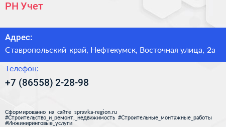 РН-Учет по адресу Ставропольский край, Нефтекумск, Восточная улица, 2а в дальнейшем Организация, размещена в следующих категориях: