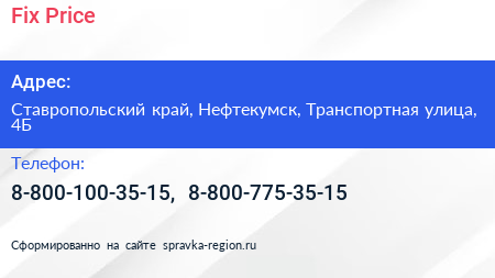 Fix Price по адресу Ставропольский край, Нефтекумск, Транспортная улица, 4Б в дальнейшем Организация, размещена в следующих категориях: