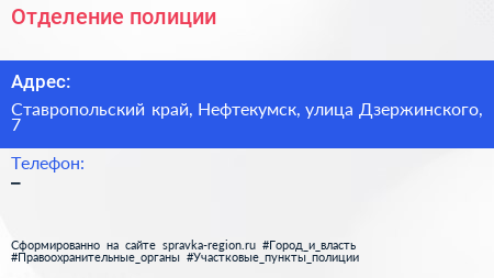 Отделение полиции по адресу Ставропольский край, Нефтекумск, улица Дзержинского, 7 в дальнейшем Организация, размещена в следующих категориях: