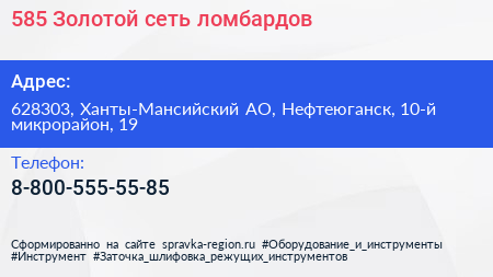 585*Золотой, сеть ломбардов по адресу 628303, Ханты-Мансийский АО, Нефтеюганск, 10-й микрорайон, 19 в дальнейшем Организация, размещена в следующих категориях: