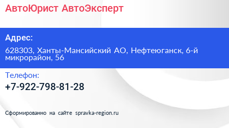 АвтоЮрист & АвтоЭксперт по адресу 628303, Ханты-Мансийский АО, Нефтеюганск, 6-й микрорайон, 56 в дальнейшем Организация, размещена в следующих категориях: