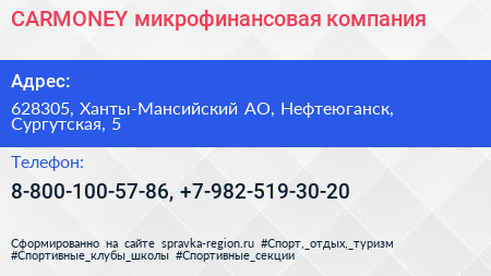 CARMONEY, микрофинансовая компания по адресу 628305, Ханты-Мансийский АО, Нефтеюганск, Сургутская, 5 в дальнейшем Организация, размещена в следующих категориях: