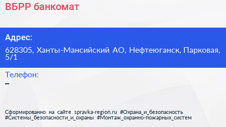 ВБРР, банкомат по адресу 628305, Ханты-Мансийский АО, Нефтеюганск, Парковая, 5/1 в дальнейшем Организация, размещена в следующих категориях:
