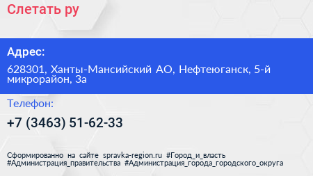 Слетать.ру по адресу 628301, Ханты-Мансийский АО, Нефтеюганск, 5-й микрорайон, 3а в дальнейшем Организация, размещена в следующих категориях: