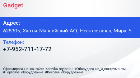 Gadget по адресу 628305, Ханты-Мансийский АО, Нефтеюганск, Мира, 5 в дальнейшем Организация, размещена в следующих категориях: