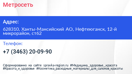 Метросеть по адресу 628310, Ханты-Мансийский АО, Нефтеюганск, 12-й микрорайон, ст62 в дальнейшем Организация, размещена в следующих категориях: