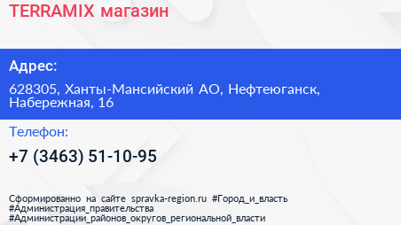 TERRAMIX, магазин по адресу 628305, Ханты-Мансийский АО, Нефтеюганск, Набережная, 16 в дальнейшем Организация, размещена в следующих категориях: