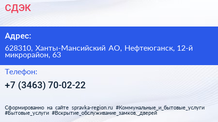 СДЭК по адресу 628310, Ханты-Мансийский АО, Нефтеюганск, 12-й микрорайон, 63 в дальнейшем Организация, размещена в следующих категориях: