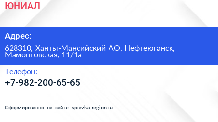 ЮНИАЛ по адресу 628310, Ханты-Мансийский АО, Нефтеюганск, Мамонтовская, 11/1а в дальнейшем Организация, размещена в следующих категориях: