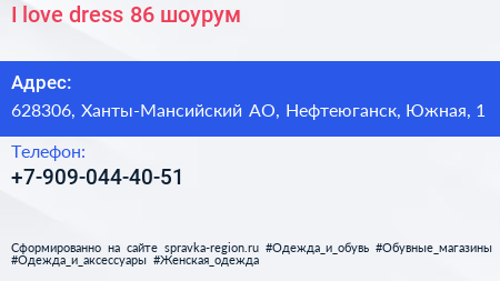 I love dress 86, шоурум по адресу 628306, Ханты-Мансийский АО, Нефтеюганск, Южная, 1 в дальнейшем Организация, размещена в следующих категориях:
