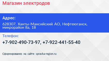 Магазин электродов по адресу 628307, Ханты-Мансийский АО, Нефтеюганск, микрорайон 8а, 18 в дальнейшем Организация, размещена в следующих категориях: