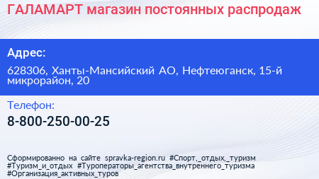 ГАЛАМАРТ, магазин постоянных распродаж по адресу 628306, Ханты-Мансийский АО, Нефтеюганск, 15-й микрорайон, 20 в дальнейшем Организация, размещена в следующих категориях:
