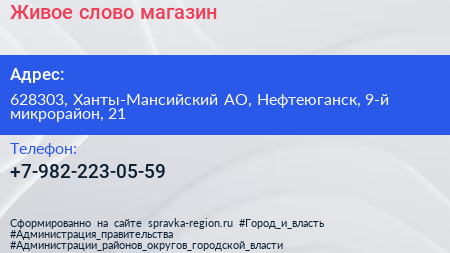 Живое слово, магазин по адресу 628303, Ханты-Мансийский АО, Нефтеюганск, 9-й микрорайон, 21 в дальнейшем Организация, размещена в следующих категориях: