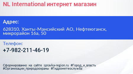 NL International, интернет-магазин по адресу 628310, Ханты-Мансийский АО, Нефтеюганск, микрорайон 16а, 50 в дальнейшем Организация, размещена в следующих категориях: