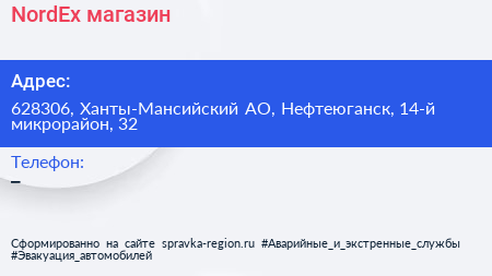 NordEx, магазин по адресу 628306, Ханты-Мансийский АО, Нефтеюганск, 14-й микрорайон, 32 в дальнейшем Организация, размещена в следующих категориях: